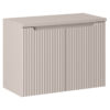 Nova Cashmere baldai išsiskiria unikaliu dizainu. Vertikalios frezuotos ryfliavimo detalės kūrybingai papildo interjerą ir suteikia jam charakterį. Spalva, primenanti kašmirą, suteikia šilumos ir jaukumo bet kuriam vonios kambariui. Su tinkamu apšvietimu, šie baldai išryškina savo eleganciją ir modernumą.