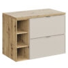 Šis komplektas, priklausantis Bella Cashmere kolekcijai, yra idealus sprendimas norint sukurti harmoningą ir elegantišką vonios interjerą. Stilinga išvaizda ir praktiniai sprendimai daro šiuos baldus ne tik dizaino akcentu, bet ir patogiu įrankiu kasdienei priežiūrai.