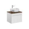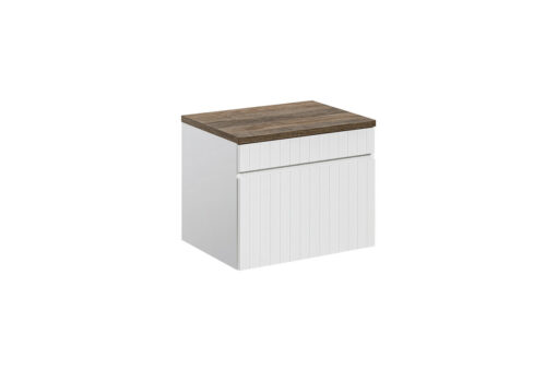 Su minimalistiniu požiūriu ir šiuolaikiniais akcentais, šis vonios baldų komplektas suteikia jūsų erdvei unikalią atmosferą. Frezuoti vertikalūs kanalai ir balti matiniai akcentai kuria išskirtinę išvaizdą, kuri derės su įvairiais dekoravimo stiliais.