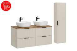 Komplektas pasižymi funkcionalumu, kuris leidžia sutaupyti erdvės mažesnėse vonios patalpose. Naudojami išskirtinio dizaino elementai garantuoja, kad baldamis lengvai pasinaudosite, o tvarką išlaikysite be jokių pastangų.
