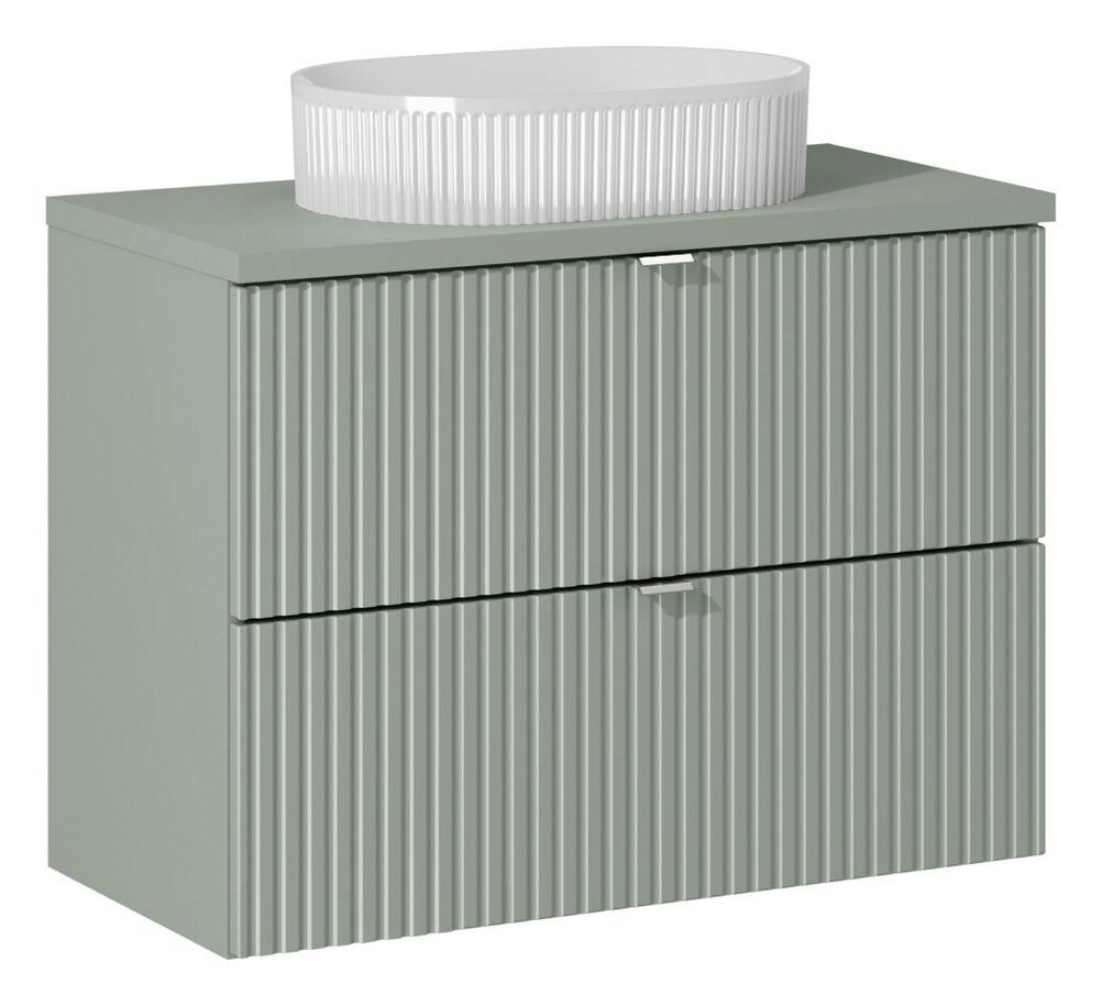 Modernus vonios baldų komplektas – Line Reed Green Stilingas vonios kambarys su Line Reed Green kolekcija