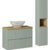 Reed Green ir Ąžuolas Coast spalvų derinys puikiai dera tarpusavyje, užtikrindamas, kad jūsų vonios spintelė atrodys šiuolaikiškai ir elegantiškai. Šis estetiškas pasirinkimas praturtins bet kurį vonios interjerą.