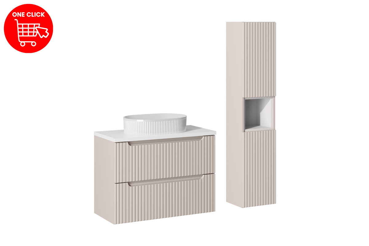 Šis 80 cm komplektas su stalviršiu ir praustuvu Beyond, įkvėps savo išskirtiniu dizainu ir patogumu. Jis puikiai tinka tiems, kurie vertina prabangą, funkcionalumą ir modernumą.