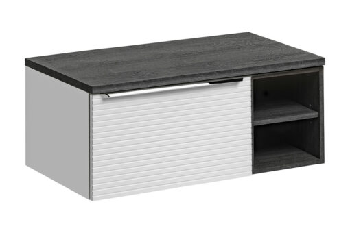 Leonardo baldų komplektas ne tik pasižymi stiliaus ir funkcionalumo deriniu, bet ir suteikia patogumą kasdieniam naudojimui. Jo plataus stalviršio paviršius nėra tik dekoratyvinis, bet taip pat praktiškas, leidžiantis patogiai organizuoti naudoti vonios aksesuarus ir kosmetiką.