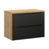 Šio komplekto spalvinė gama, įskaitant aliejuotą ąžuolą ir juodą matinį paviršių, sukuria harmoningą ir modernų vaizdą. Šios spalvos ne tik praturtina jūsų vonios interjerą, bet ir suteikia klasikinių akcentų, kurie niekada neišeina iš mados.