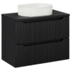Juoda matinė spalva suteikia spintelei išskirtinę išvaizdą, kurios unikalumas atsiskleidžia per subtilius frezavimo elementus ir vertikalius griovelius. Tokia spalva lengvai derės prie bet kurios vonios kambario interjero stiliaus, kurdama harmoningą aplinką.