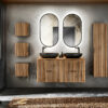 Pasirinkite iš įvairių komplektų, kurie gali patenkinti tiek mažų, tiek didelių vonios kambarių poreikius. Nuo erdvių spintelių iki elegantiškų praustuvų, kiekvienas komplektas suteikia galimybę sukurti vizualiai patrauklią ir veiksmingą erdvę.
