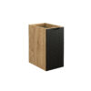 Ši spintelė, su juoda matinė danga ir aliejuoto ąžuolo akcentais, puikiai dera su įvairiais interjero stiliais. Jos korpusas pagamintas naudojant aukštos kokybės laminuotą medžiagą, todėl užtikrina ilgaamžiškumą ir patvarumą, net ir esant drėgnoms vonios sąlygoms.