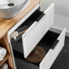 Mūsų vonios spintelė yra idėjų ir praktinių sprendimų derinys. Dvi erdvios šufladės suteikia pakankamai vietos vonios higienos reikmenims, leisdamos jums išlaikyti tvarką ir organizaciją po ranka.