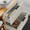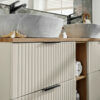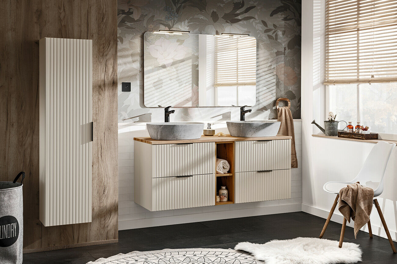 Ši spintelė buvo sukurta tam, kad derintų stilių ir funkcionalumą, suteikdama jūsų vonios kambariui modernią ir jaukią išvaizdą. Jos šiuolaikinis dizainas ir rafinuotas kaszmiro atspalvis puikiai dera su įvairiomis interjero koncepcijomis, todėl tai puikus sprendimas tiek klasikiniam, tiek moderniam interjerui.