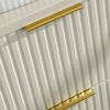 Suprojektuota su dėmesiu kiekvienai Detalei, ši spintelė pasižymi išskirtinėmis proporcijomis, o ryškūs frontai suteikia elegantišką išvaizdą. Galimybė rinktis iš trijų puikių spalvų, tokių kaip aukso, chromo ar matinės juodos, leidžia pritaikyti baldą pagal jūsų asmeninius pageidavimus ir esamą interjerą.