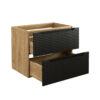 Luxor Black kolekcija išsiskiria unikaliu juodu matinio paviršiaus ir aliejuoto ąžuolo deriniu. Ši kombinacija ne tik suteikia subtilaus prabangumo, bet ir puikiai atitinka besikeičiančius interjero dizaino standartus. Nuo stalčių funkcionalumo iki estetiškos išvaizdos, šie baldai yra išties puikus pasirinkimas.