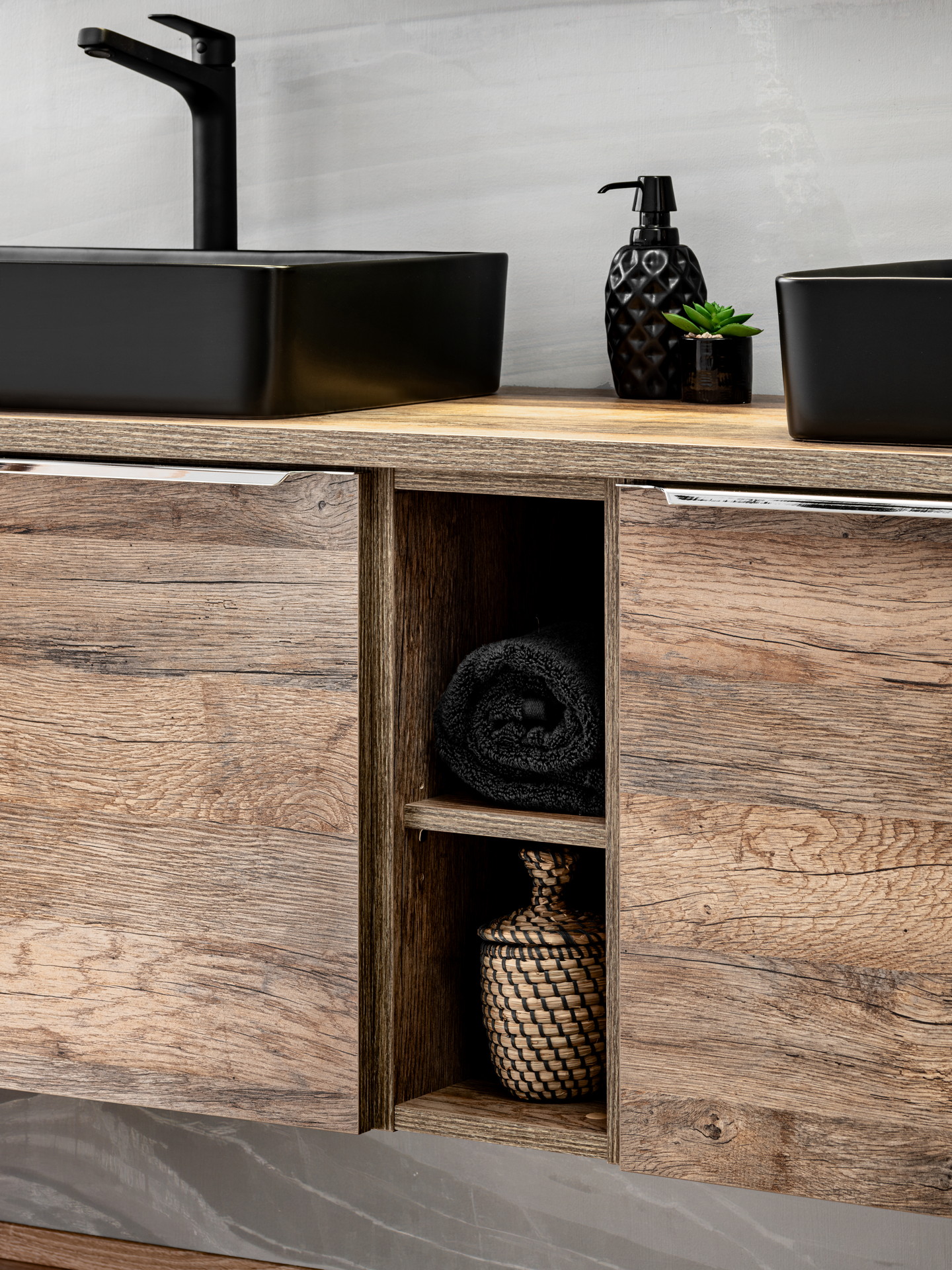 Elegantiška praustuvo spintelė – tai baldas, kuris pagražins ir suteiks žavesio, bet kurio vonios kambario interjerui. Modelio privalumas – modernus dizainas, kuris papuoš, bet kokį interjerą.