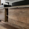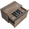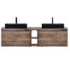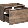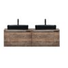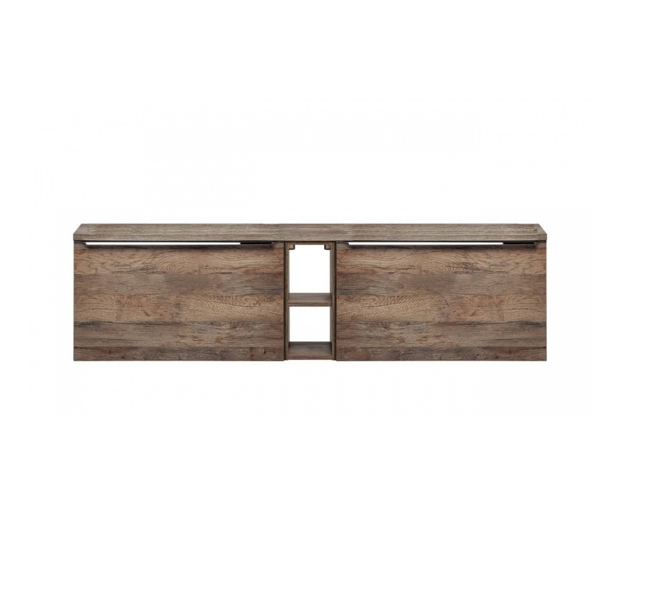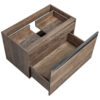 Pakabinama tamsinto ąžuolo spalvos vonios spintelė praustuvams su softclose tylaus uždarymo sistema.