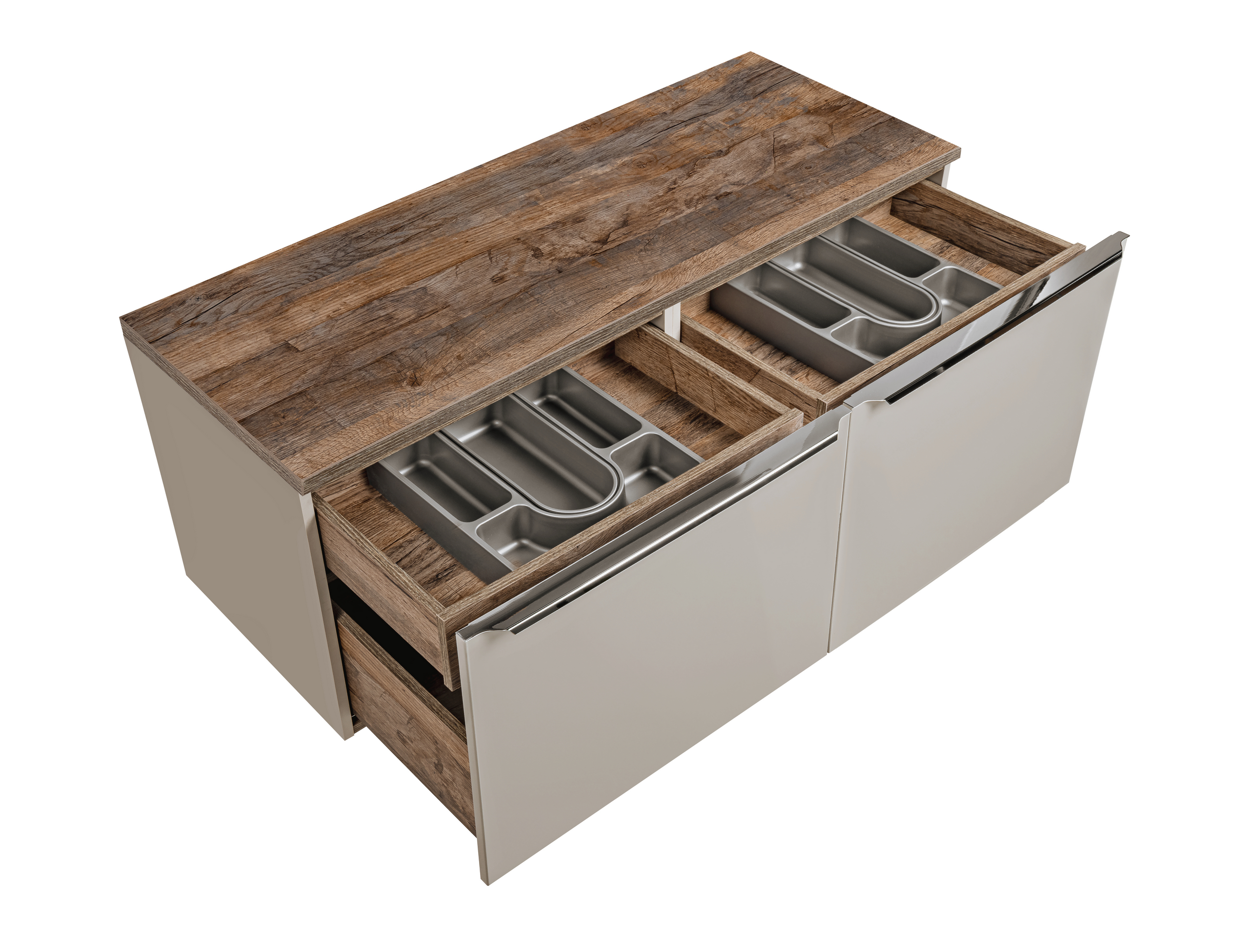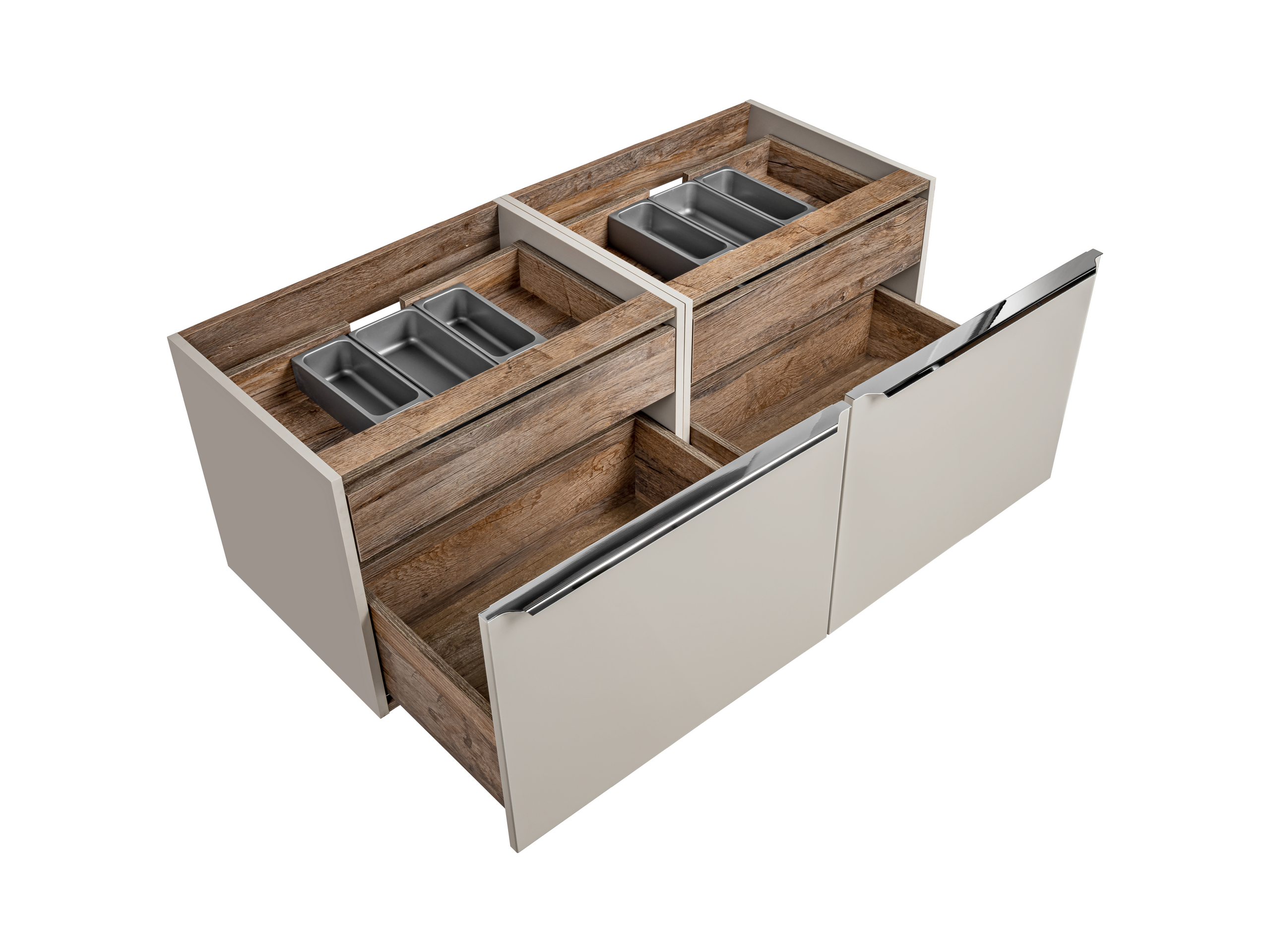 yra modernaus stiliaus baldai, dėl kurių jie lengvai tilps į beveik, bet kokį išdėstymą. spalvos priekiai ir korpusas kartu su chromuotomis rankenomis suteikia visam interjerui lengvumo ir elegancijos. Kolekcijoje esančios veidrodinės spintelės optiškai padidina vonios kambarį ir suteikia papildomos vietos daiktams susidėti. Kolekcijoje yra praustuvo spintelės, aukšta kolona, veidrodinės spintelės, apatinės ir viršutinės lentynos. Platus spintelių asortimentas daro šią kolekciją viena moduliškiausių mūsų pasiūloje, todėl tiks beveik bet kokio dydžio vonios kambariuose. Siekdami patenkinti klientų lūkesčius, šią kolekciją papildome stalčių tvarkykle.