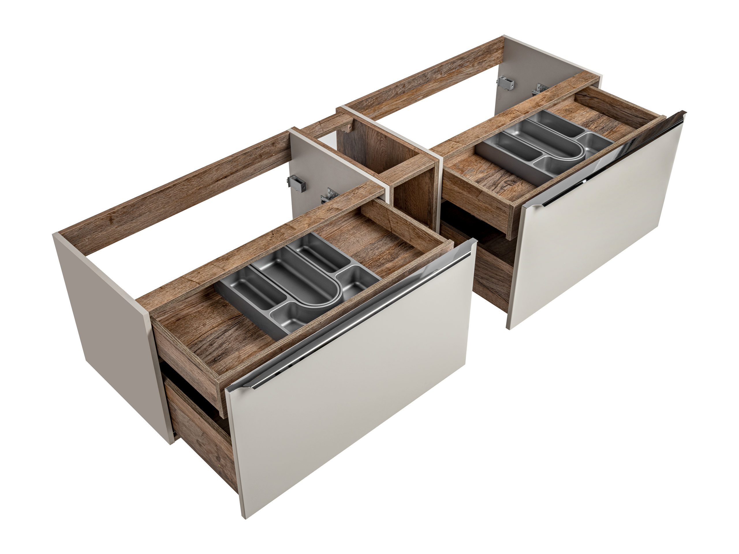 yra modernaus stiliaus baldai, dėl kurių jie lengvai tilps į beveik, bet kokį išdėstymą. spalvos priekiai ir korpusas kartu su chromuotomis rankenomis suteikia visam interjerui lengvumo ir elegancijos. Kolekcijoje esančios veidrodinės spintelės optiškai padidina vonios kambarį ir suteikia papildomos vietos daiktams susidėti. Kolekcijoje yra praustuvo spintelės, aukšta kolona, veidrodinės spintelės, apatinės ir viršutinės lentynos. Platus spintelių asortimentas daro šią kolekciją viena moduliškiausių mūsų pasiūloje, todėl tiks beveik bet kokio dydžio vonios kambariuose. Siekdami patenkinti klientų lūkesčius, šią kolekciją papildome stalčių tvarkykle.